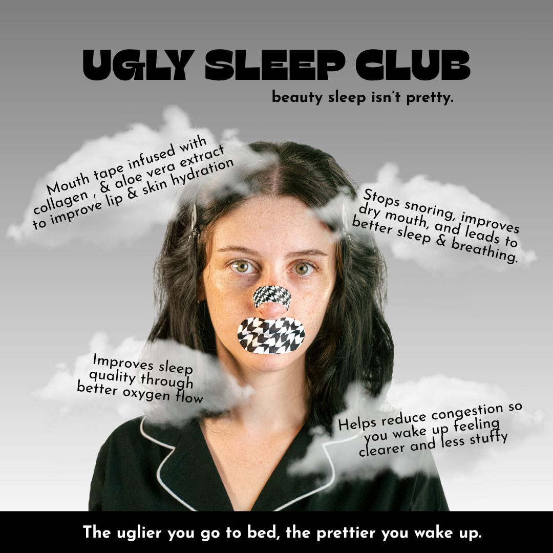 Ugly Sleep Club mouth tape doesn’t just keep that mouf shut. It’s the only tape infused with high-quality skincare ingredients designed to treat your skin while you get the deepest sleep of your life.