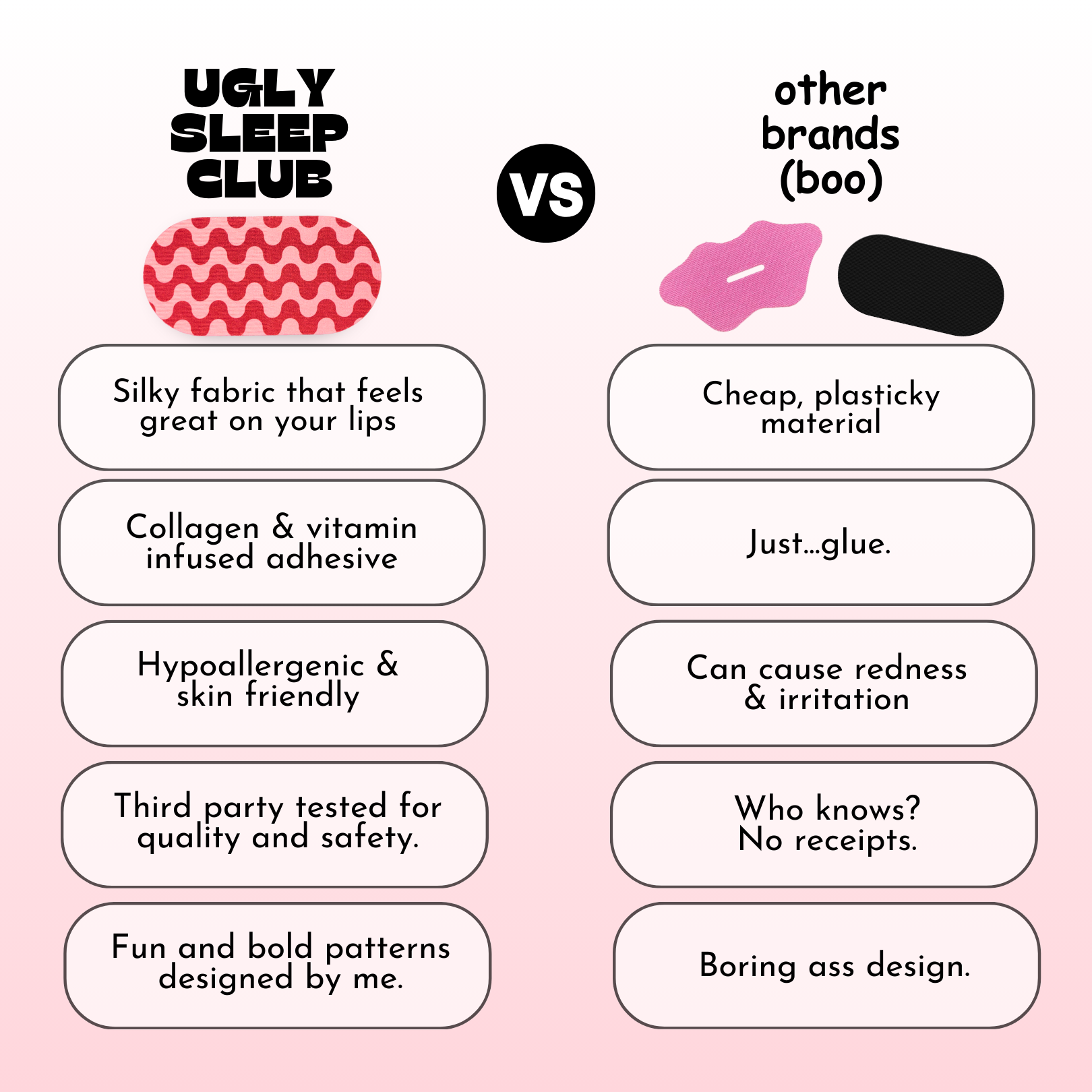 I LOVE THIS MOUTH TAPE!! This is the softest prettiest mouth tape in the world, I will be an Ugly Sleep Club customer for a long long time.