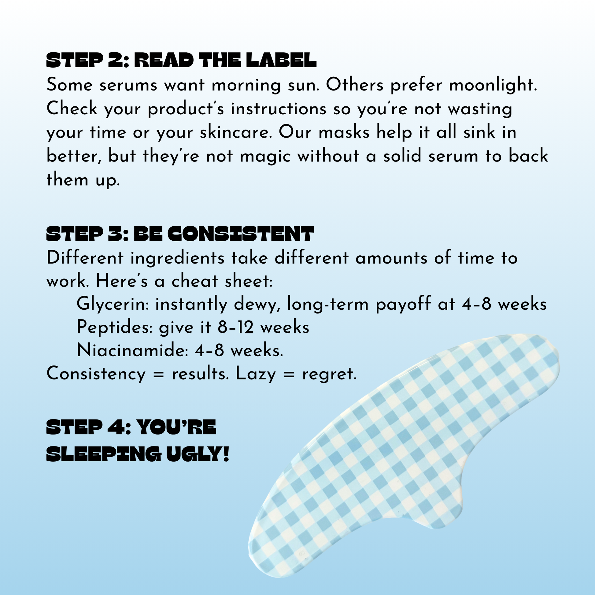 Apply your favorite serum, use a mask to seal it in. The occlusive barrier slows evaporation and helps active ingredients absorb more effectively while you sleep.