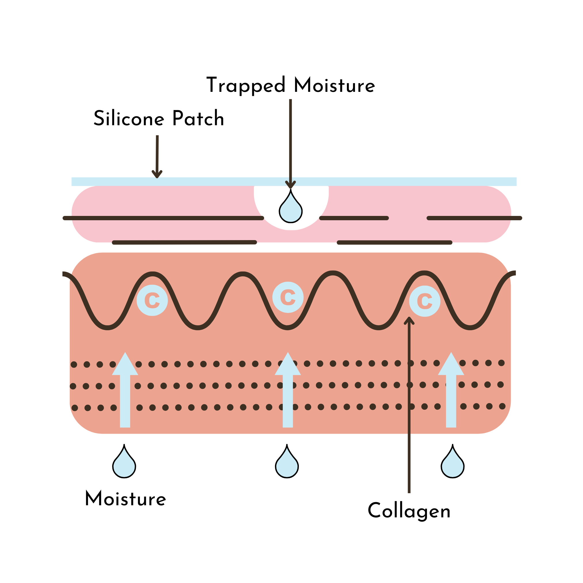 The silicone mask forms a semi-occlusive layer over the skin, trapping moisture and preventing water loss.